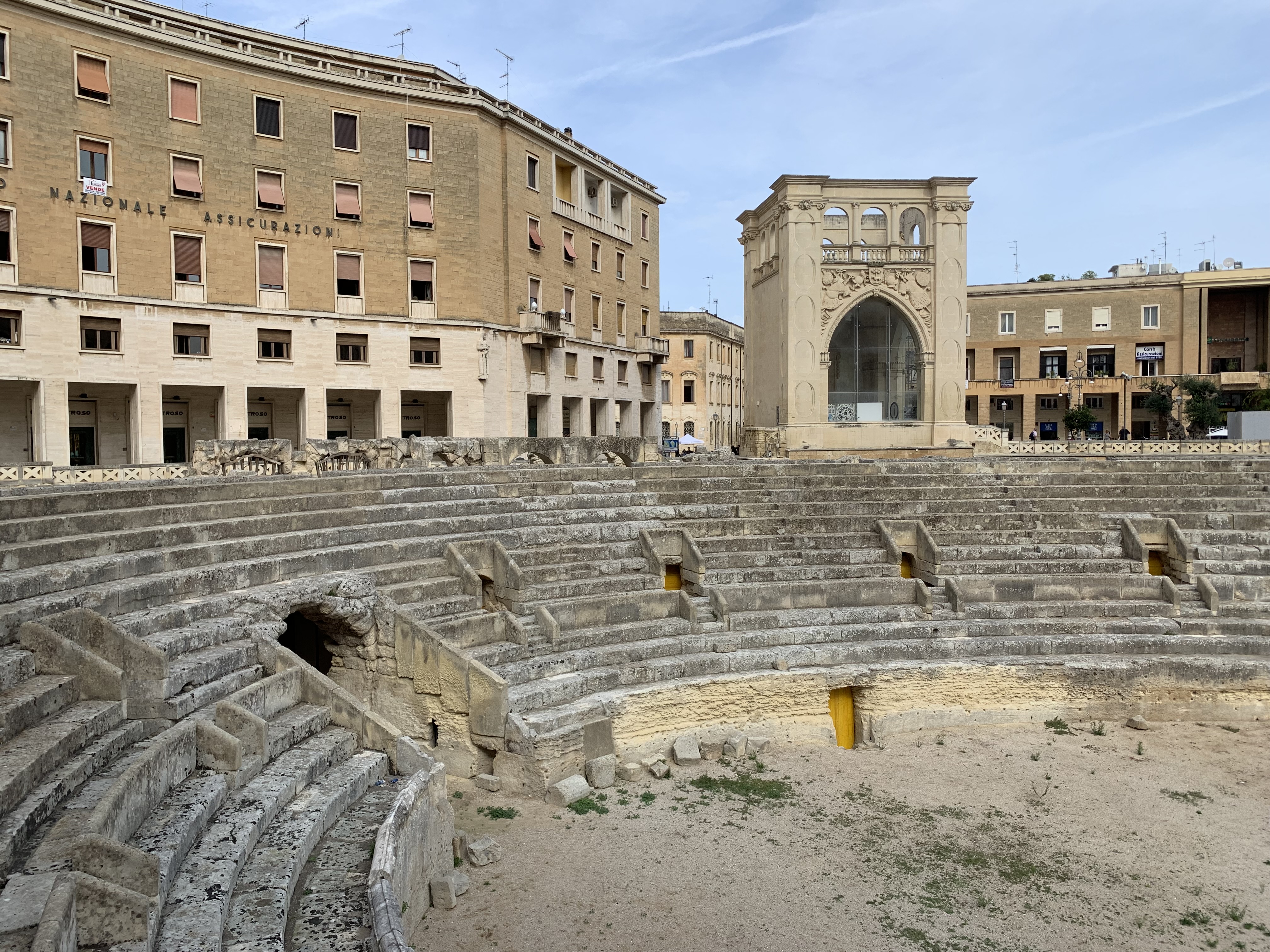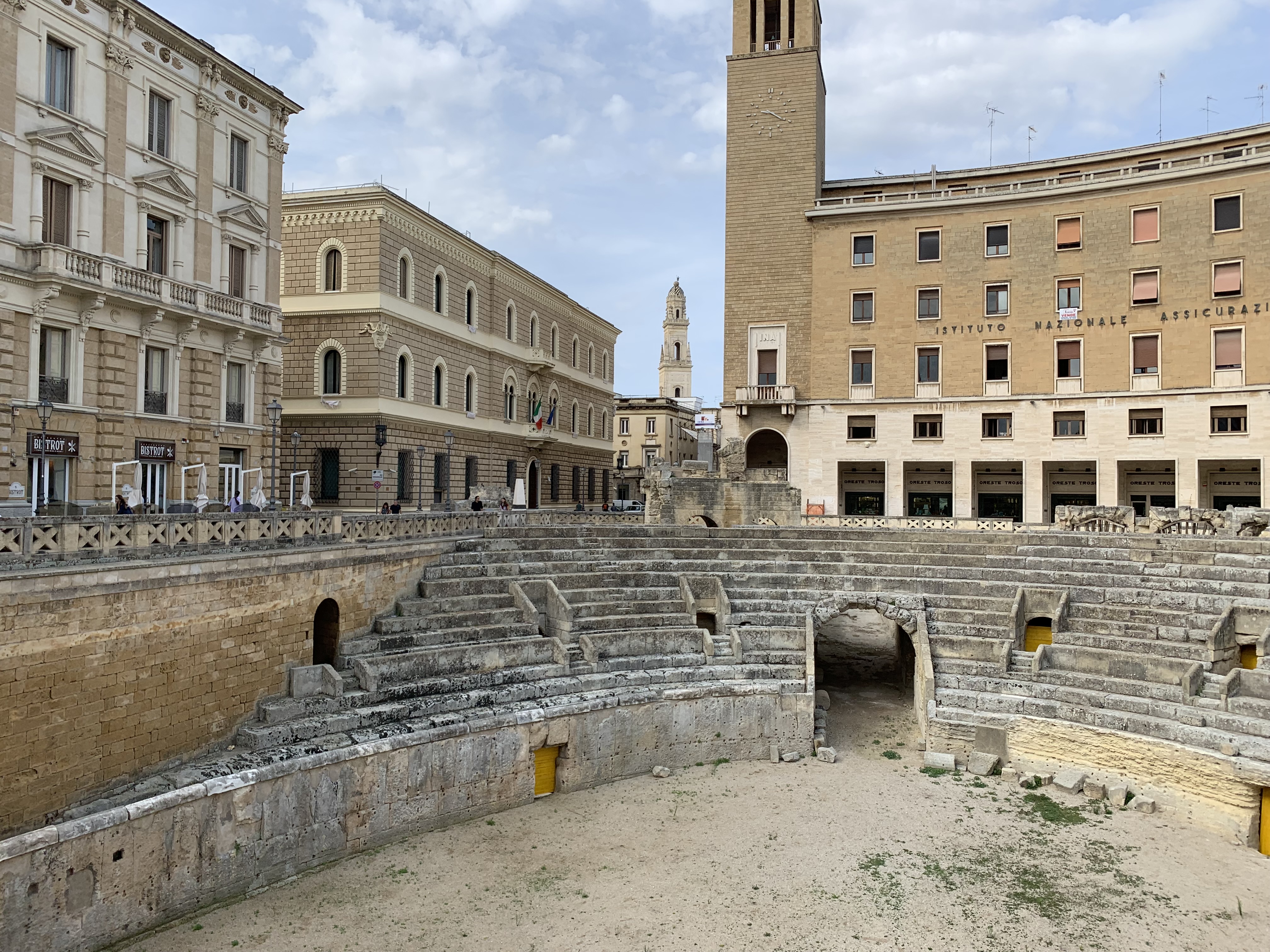 Lecce la fascinante, ville baroque, au décor de théâtre, où se croisent les amphithéâtres romains, les églises avec leurs dentelles de tuf et des architectures médiévales. Les murs ont vécu c’est ça qui fait le charme de cette ville.