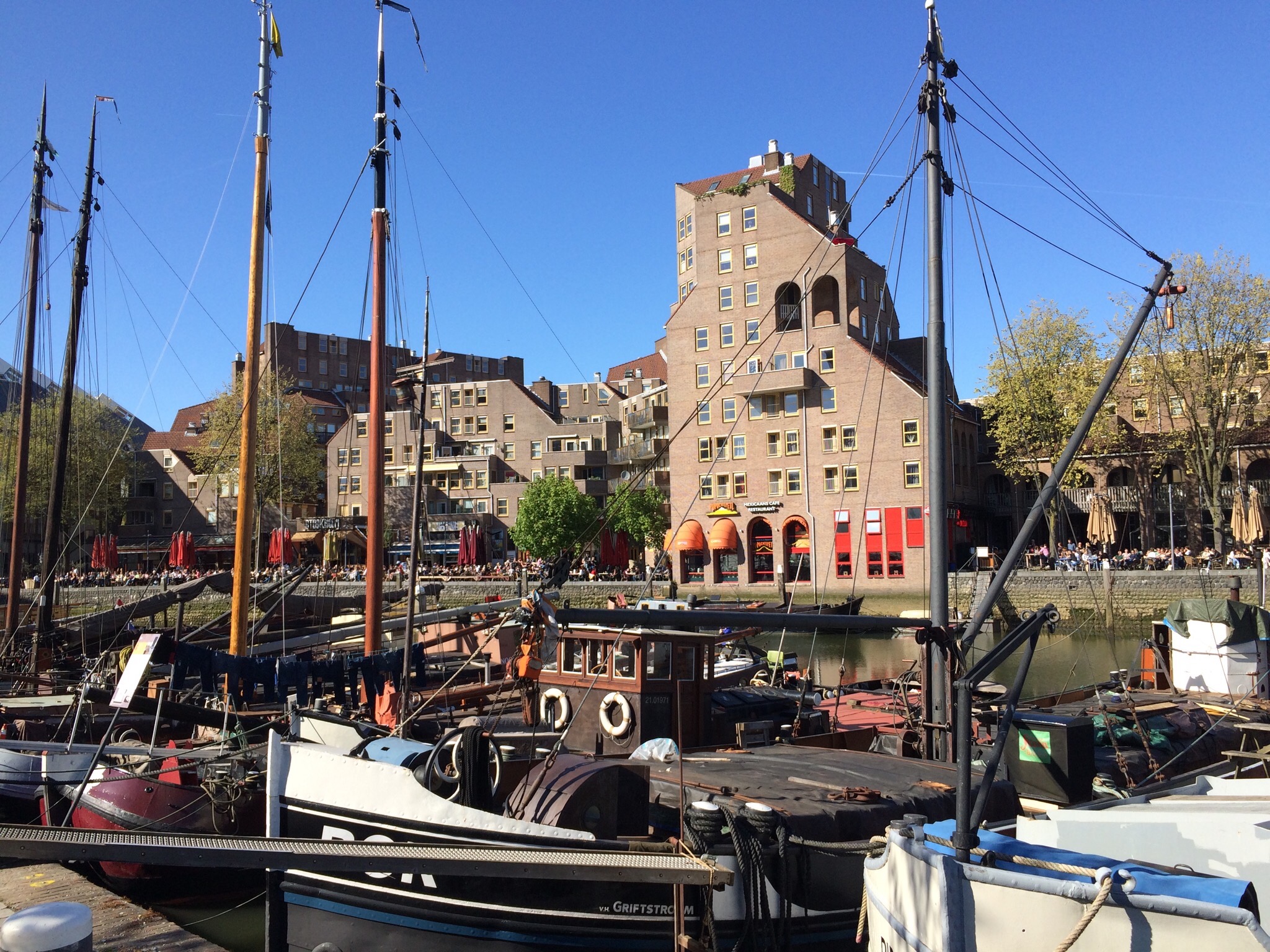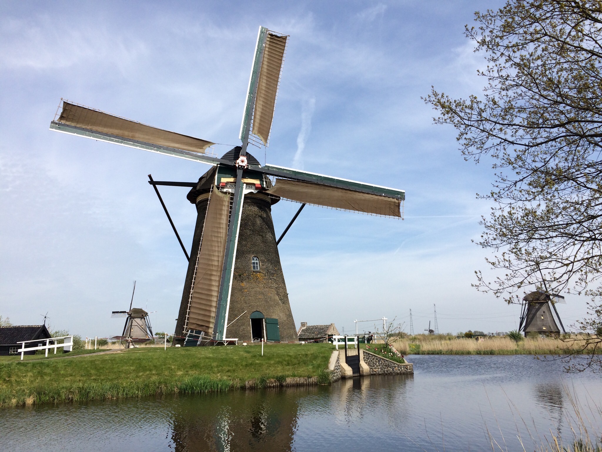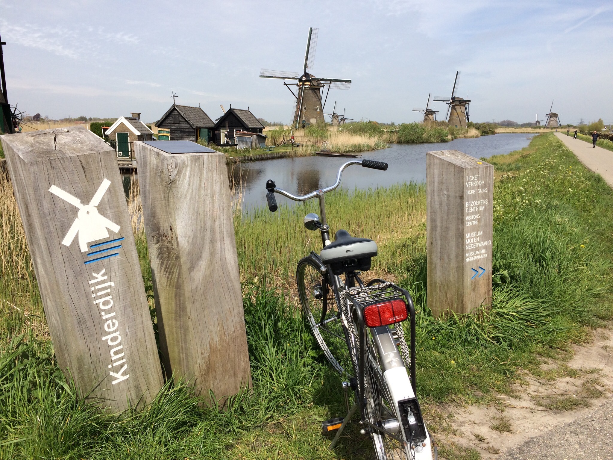 On s’y ai rendu en waterbus car le village se trouve au confluent des rivières Lek et Noord. Les vastes champs de pâturage où se trouvent les moulins ont été arrachés à la mer. Pour drainer l’eau des champs, un système de moulins à vent a été construit vers 1740. Ce groupe de moulins à vent est désormais le groupe de vieux moulins le plus important et le mieux conservé des Pays-Bas.