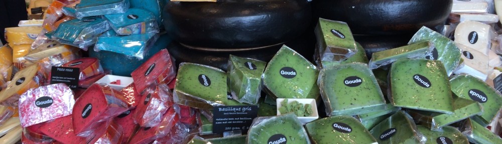 Gouda, et bien, c’est une sorte de fromage, mais c’est aussi la ville qui lui a donné son nom! Ses fromagers disent que c’est le fromage le plus mangé au monde! Ici, il est délicieux et l’on peut humer et goûter toute sorte d’aromes. Il va sans dire qu’on le déguste avec de la bière.