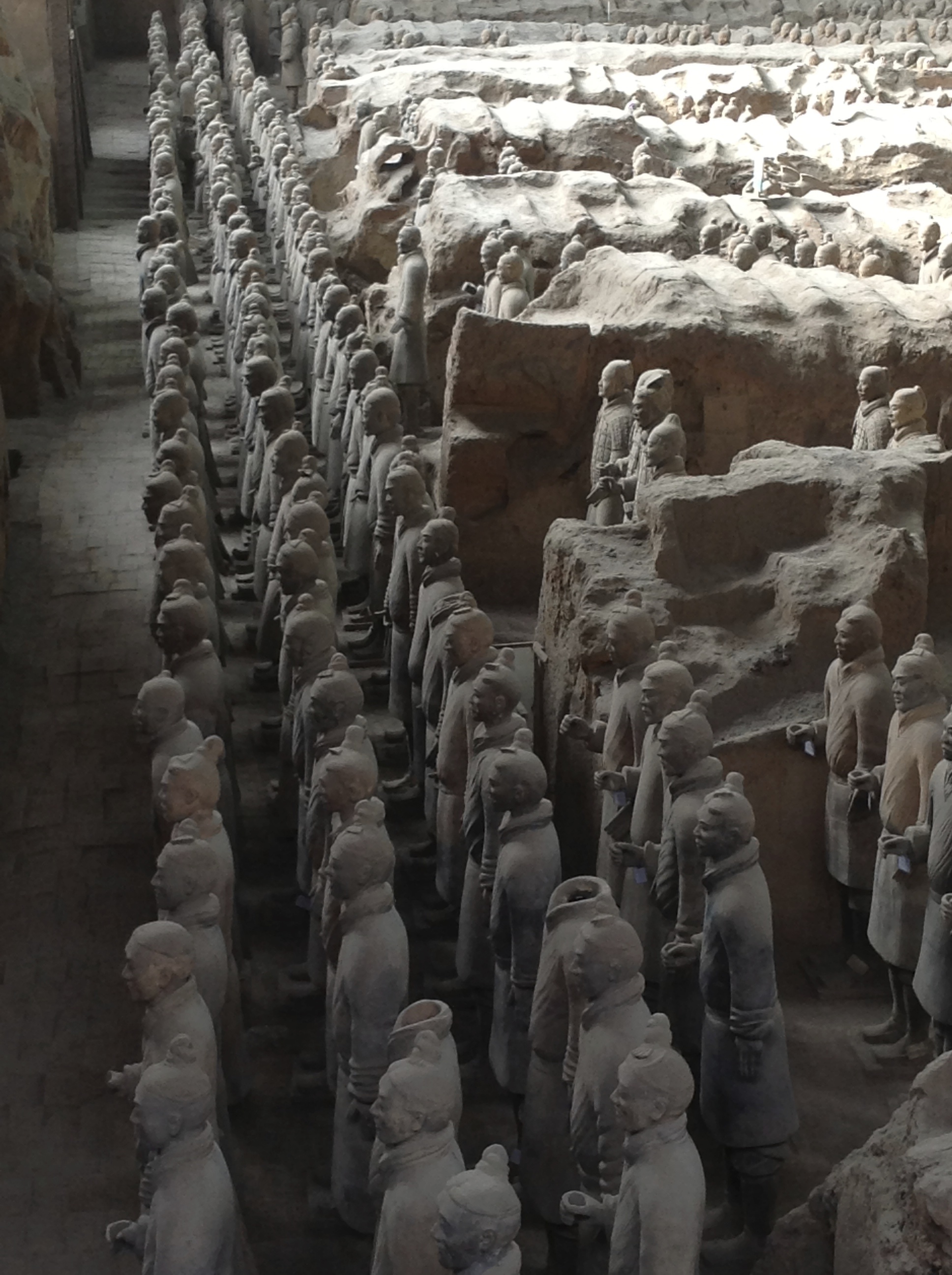 Aussi célèbre que la Grande Muraille et la Cité interdite, l’Armée enterrée des soldats de terre cuite, vieille de 2,000 ans, est incroyablement bien conservée et continue de veiller sur l’ancienne nécropole impériale. En 1974, des paysans qui creusaient un puits mirent au jour ce qui est sans doute la découverte archéologique majeure du XXe siècle : une construction souterraine faite de terre et de poutres contenant des milliers de soldats de terre cuite grandeur nature, accompagnés de leurs chevaux.