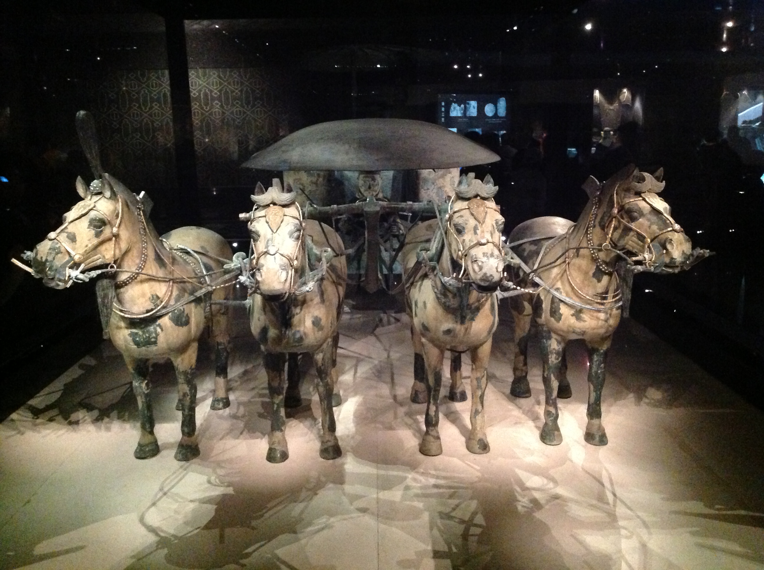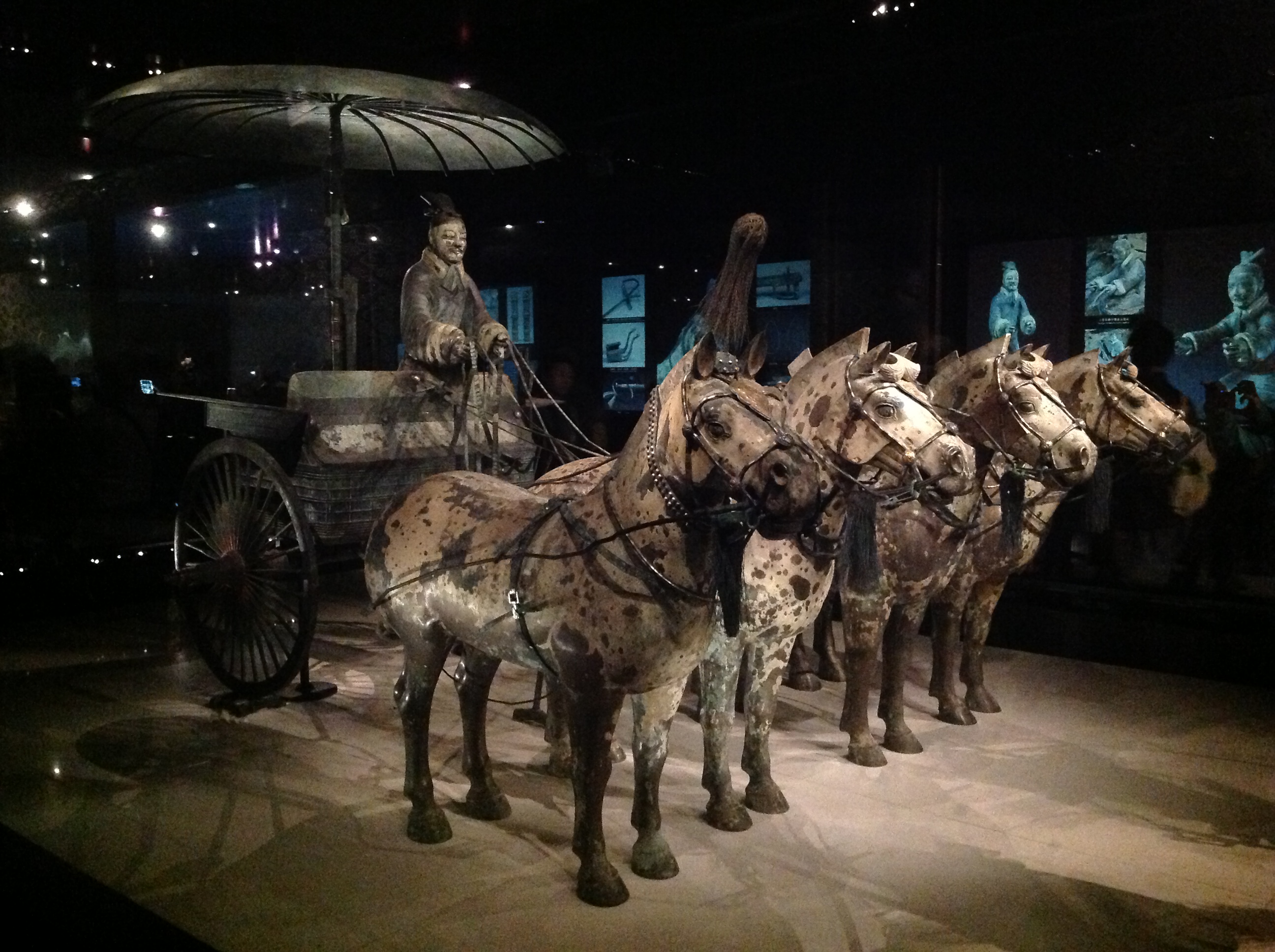 Une remarquable paire de chariots et de chevaux de bronze, exhumée en 1980 à 20 m à l’ouest du tombeau de Qin Shihuangdi, est aujourd’hui exposée dans un petit musée.