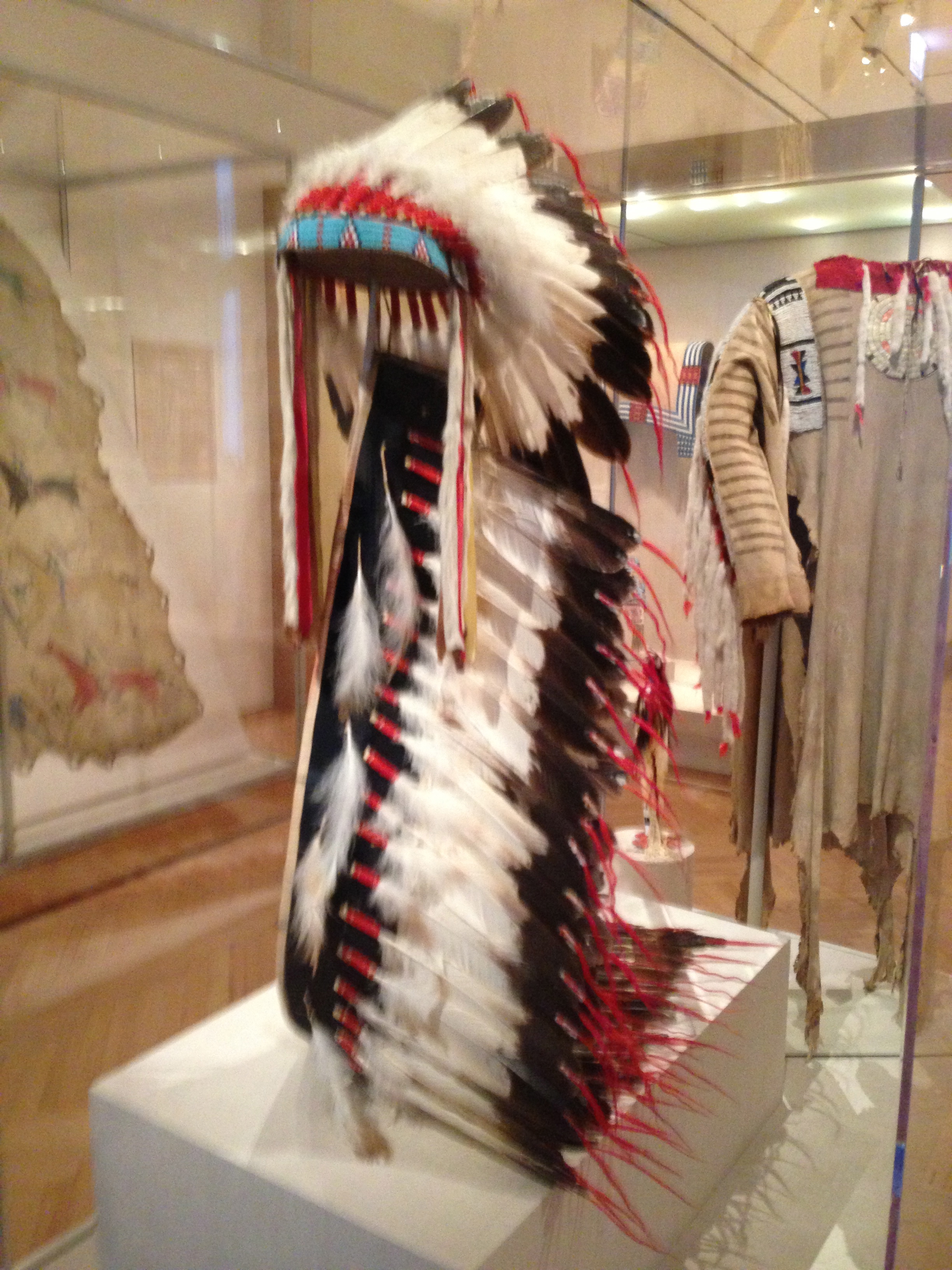 Des costumes autochtones d’Amérique, dont une magnifique coiffe: