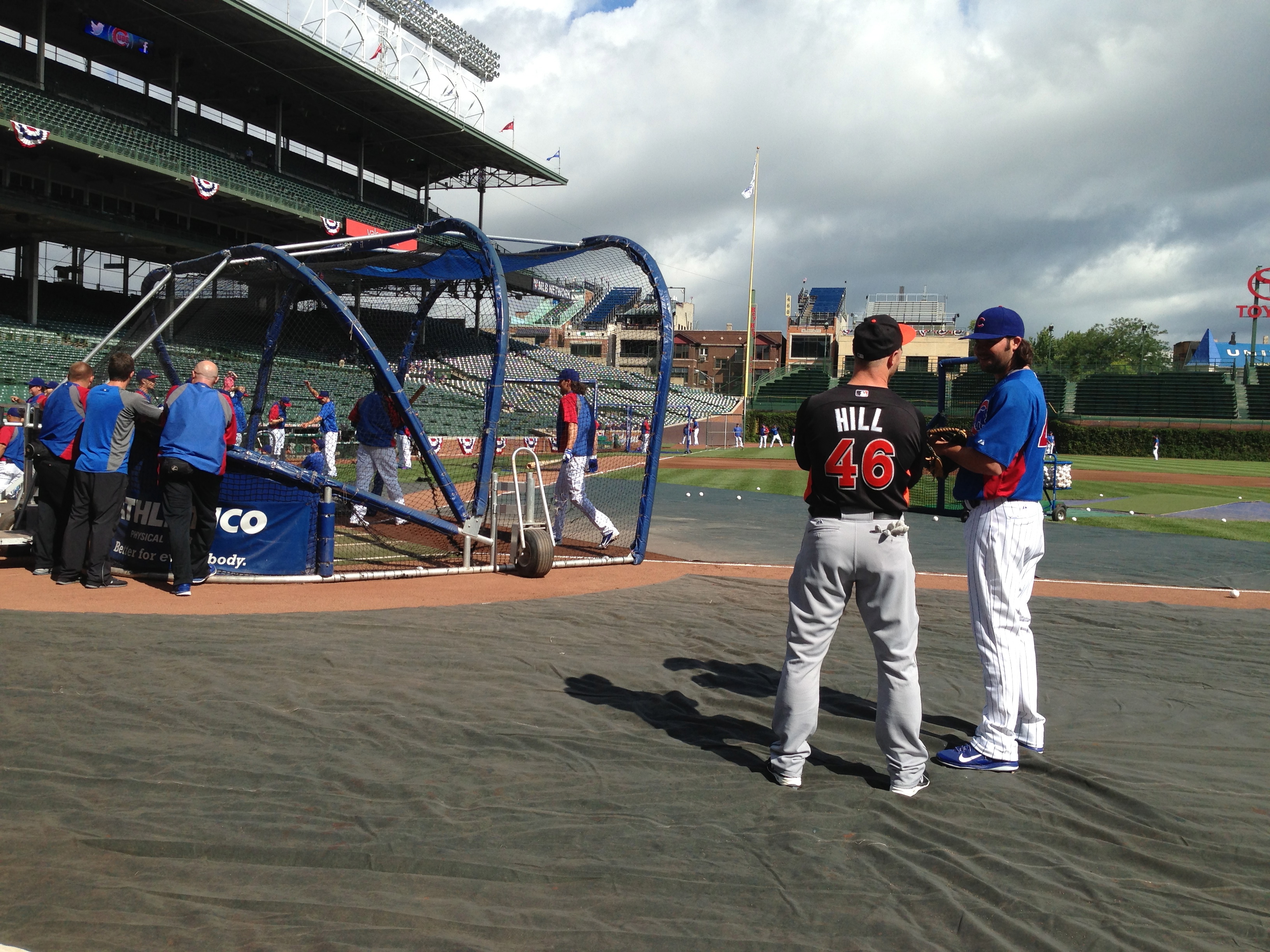 Nous avons eu le plaisir de descendre jusque sur le terrain pendant la période de réchauffement des joueurs des Cubs!